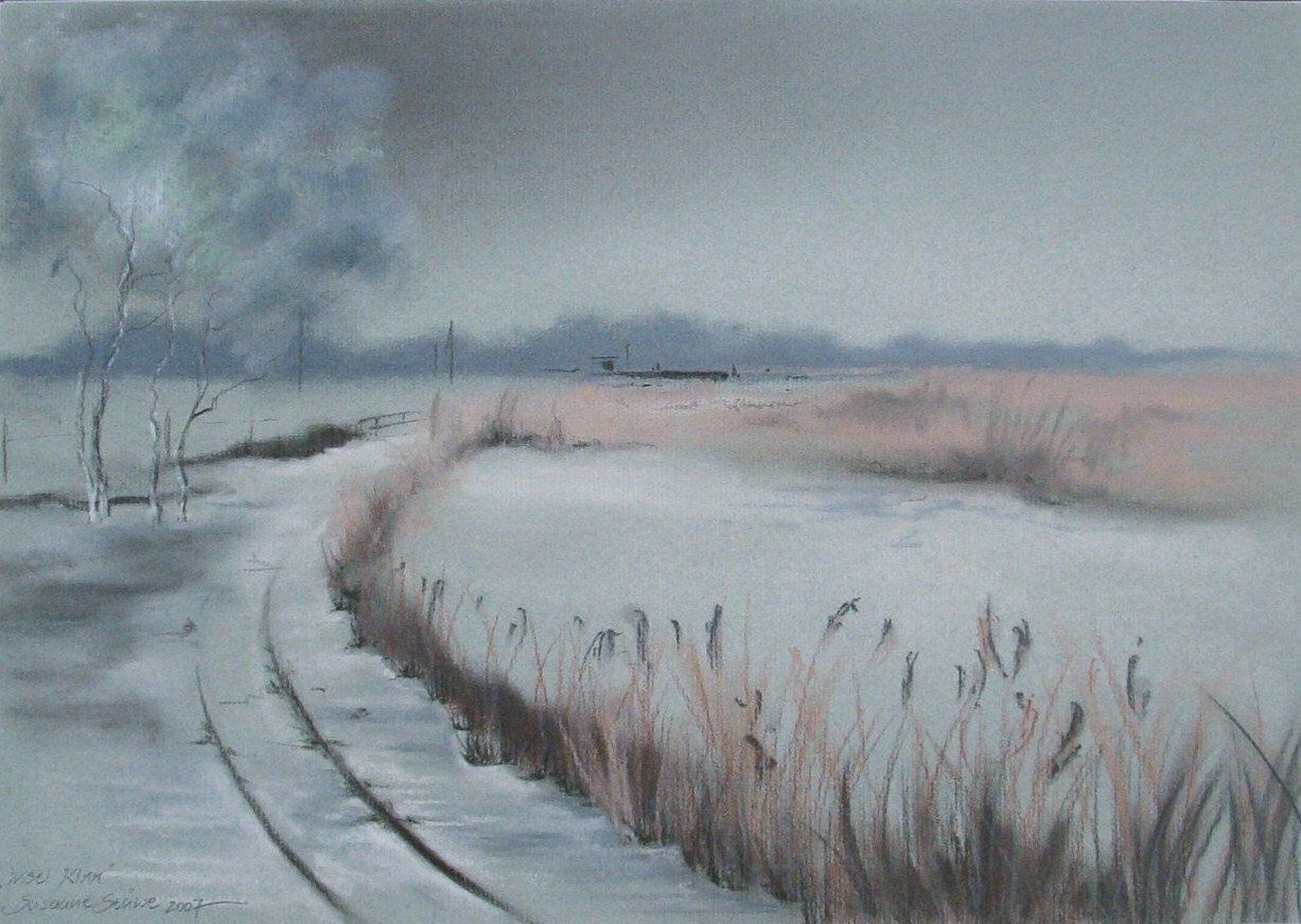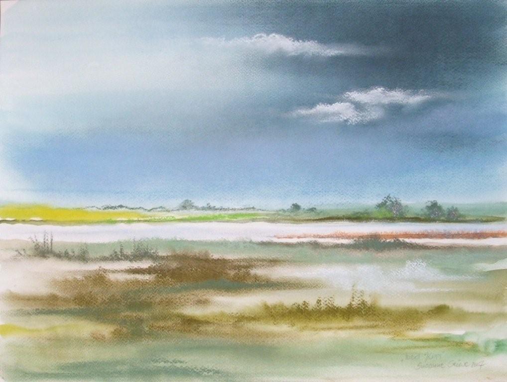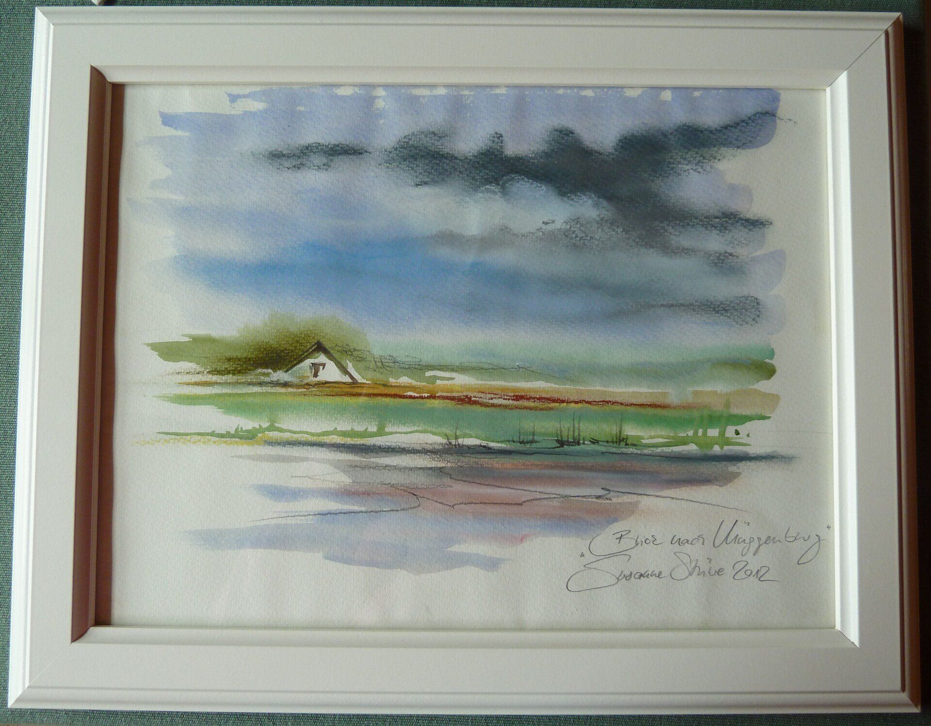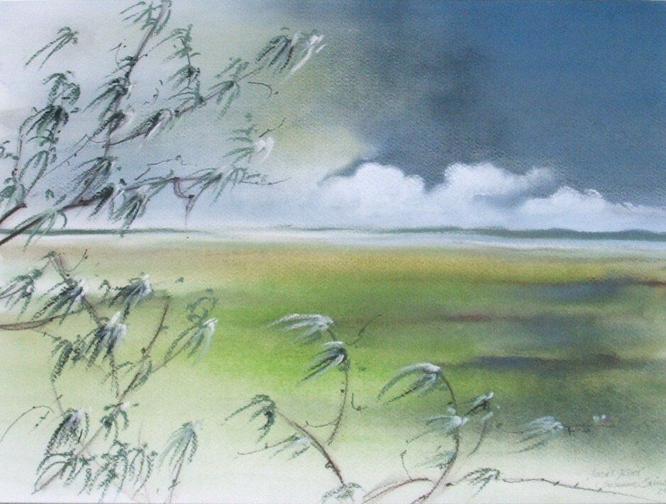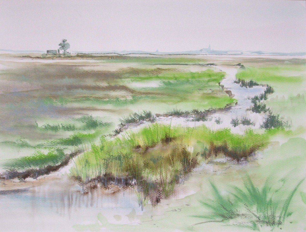 "Insel Kirr, Blick nach Barth" - Aquarell+Pastell+Bleistift