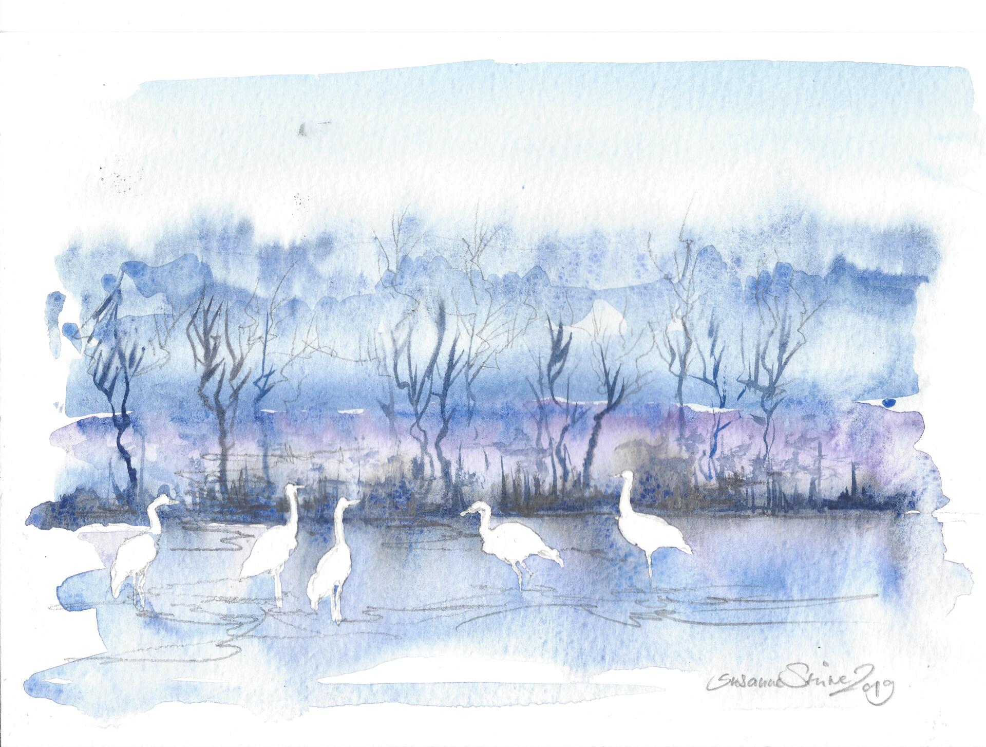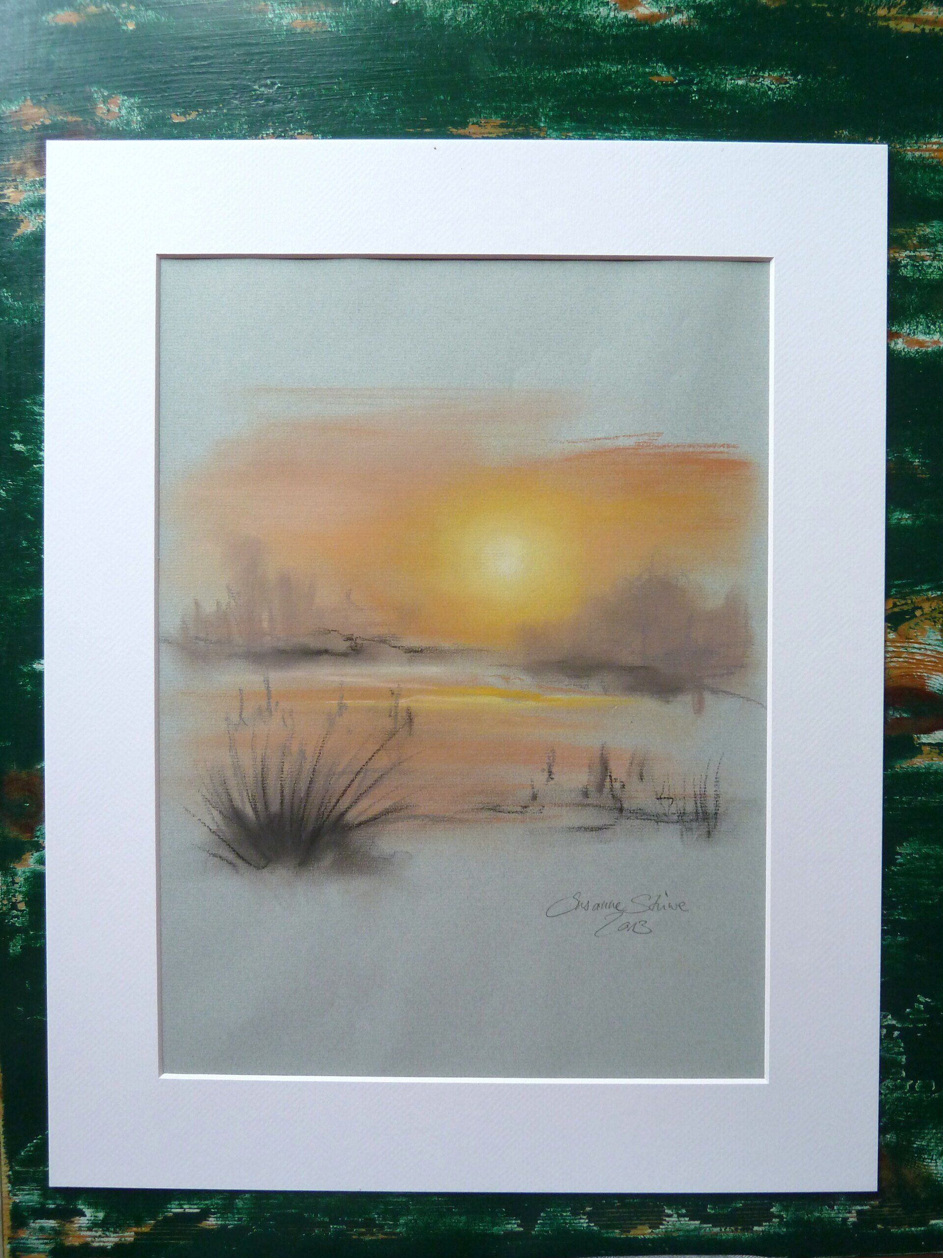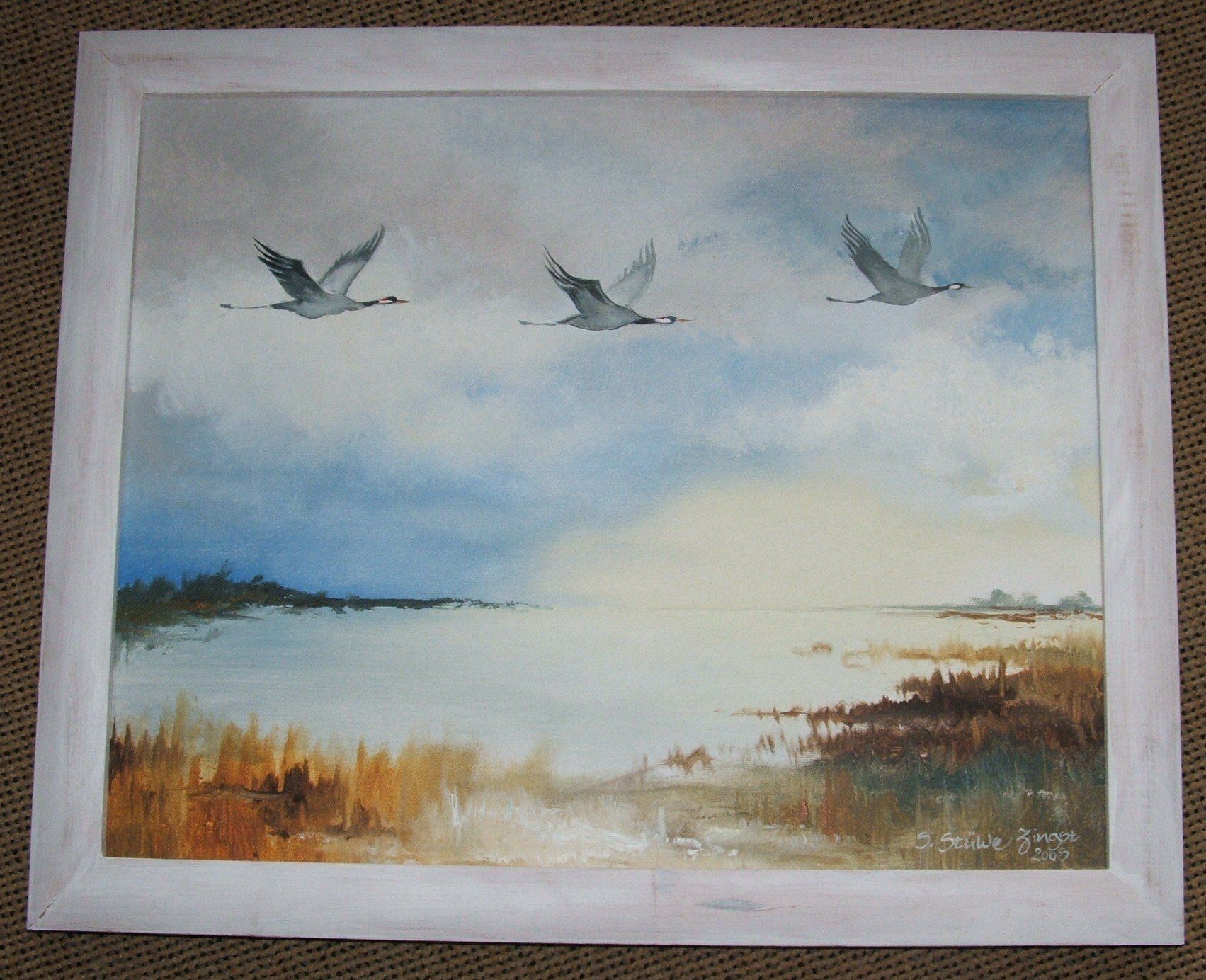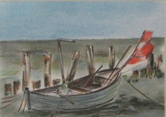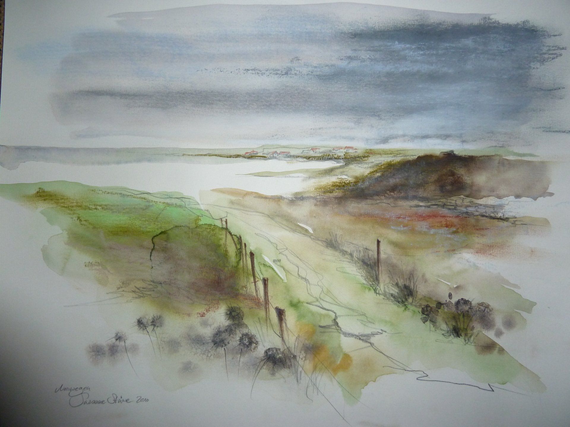 "Insel Kirr, Blick nach Barth" - Aquarell+Pastell+Bleistift