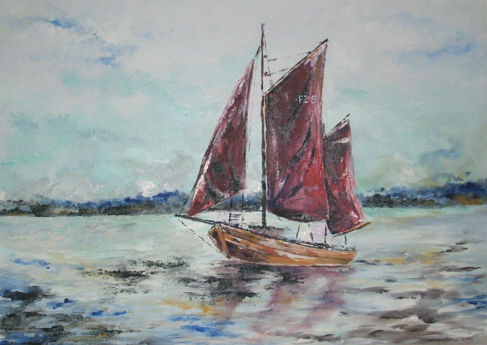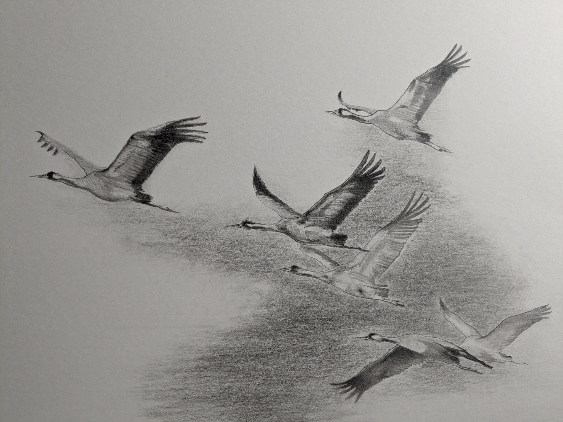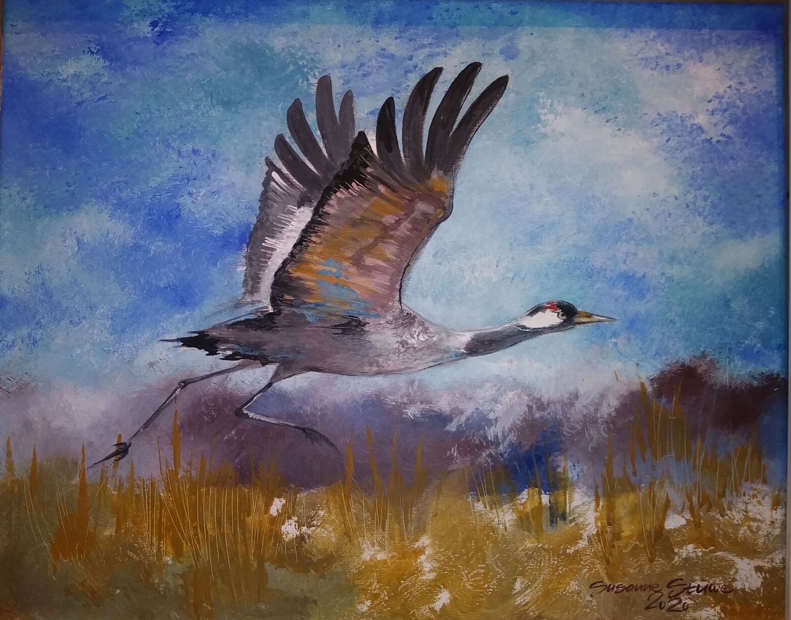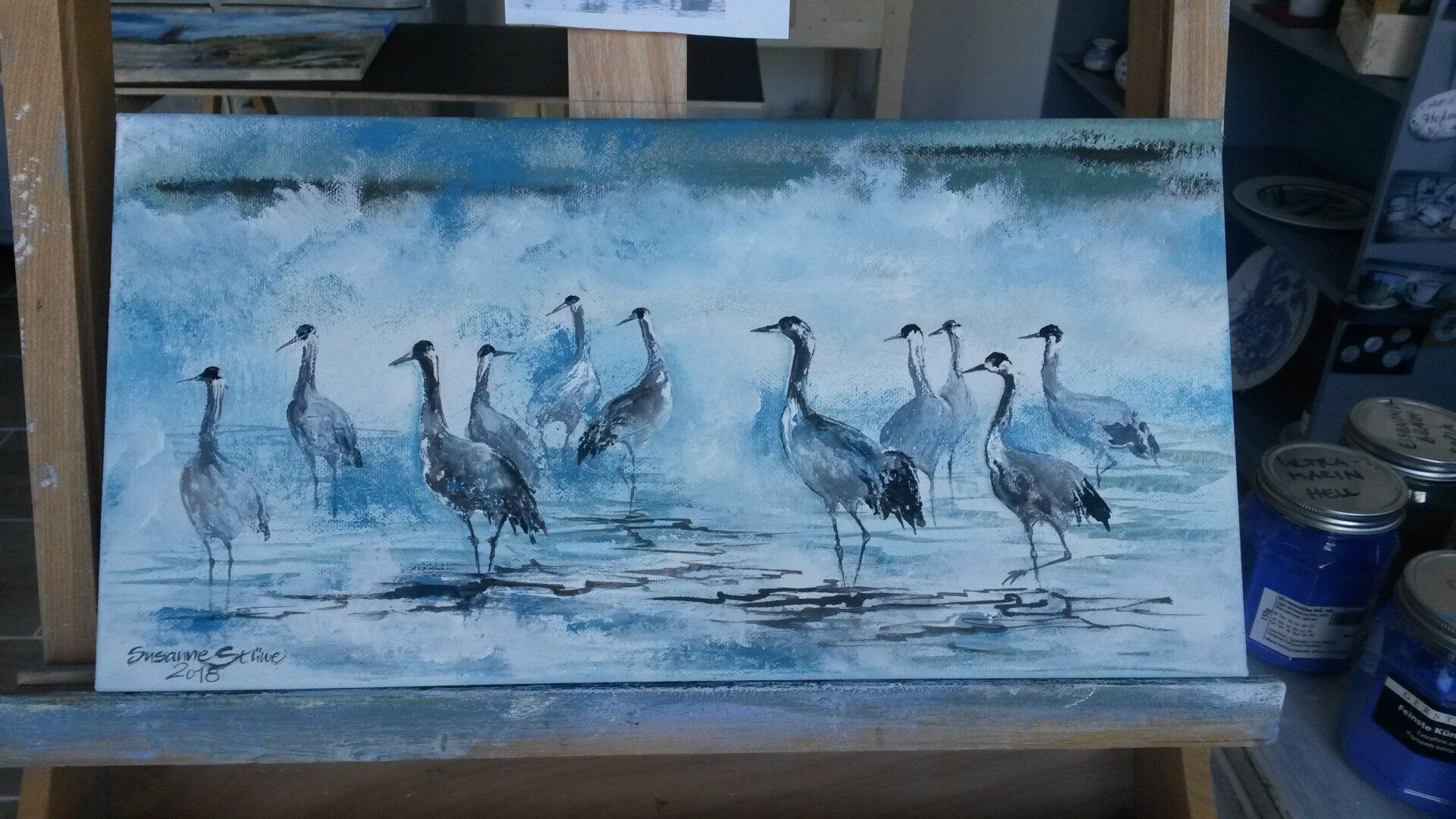 "Insel Kirr, Blick nach Barth" - Aquarell+Pastell+Bleistift
