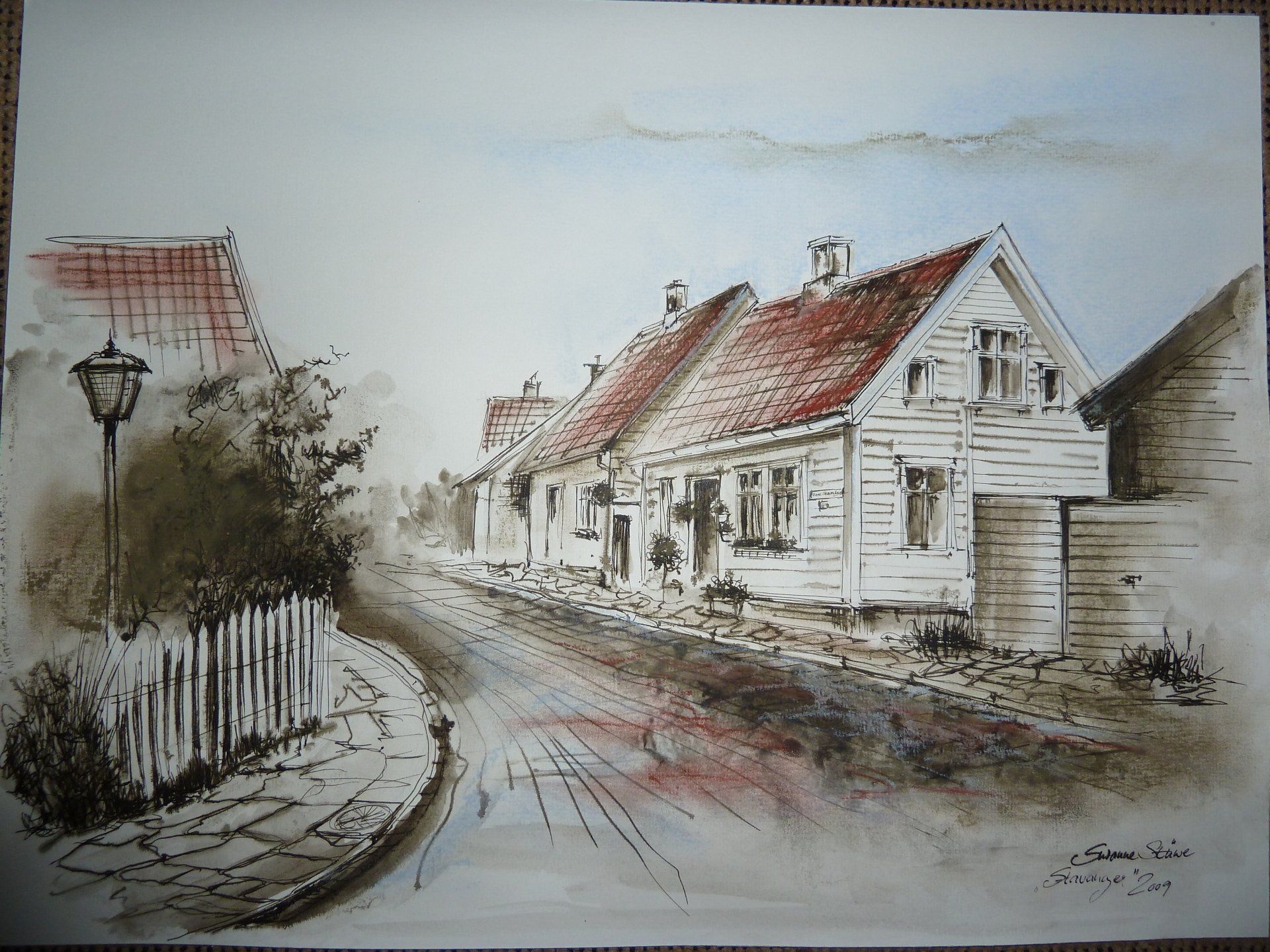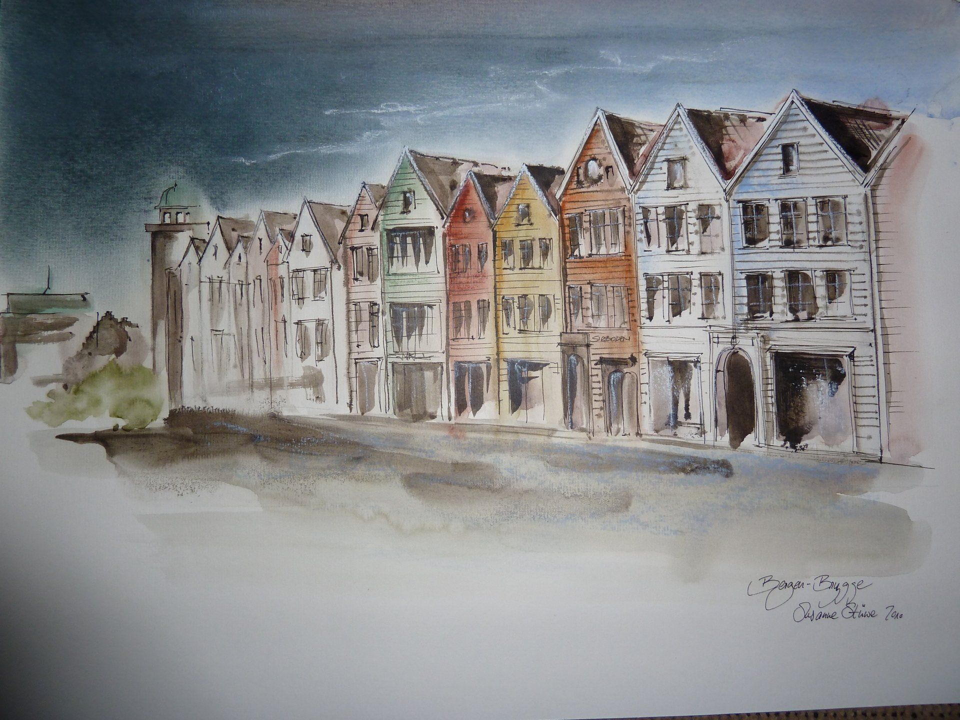 "Stavanger, Norwegen" - Aquarell+Pastell+Bleistift